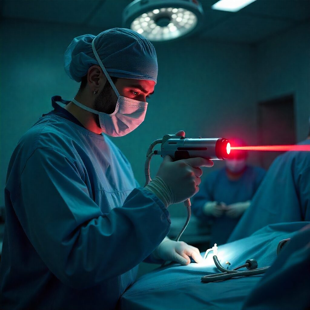 The procedure is done under local anesthesia and ultrasound guidance. A thin probe is inserted into the thyroid nodule, delivering controlled energy that gradually reduces the size of the nodule.